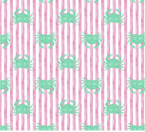 Pink and White stripe Boxer Shorts with an Apple green crab design